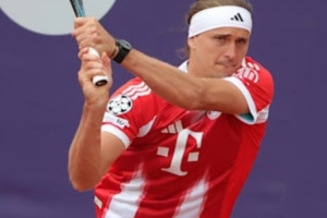 体育资讯4月17日讯 世界排名第三的ATP网球选手、拜仁球迷亚历山大·兹维列夫在今日出战慕尼黑公开赛时,身穿了一件奥利塞的拜仁球衣。